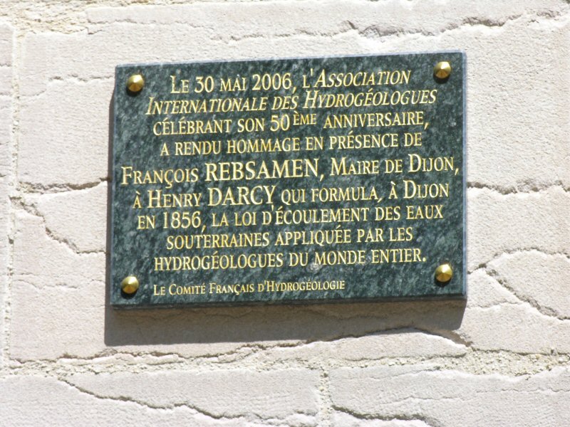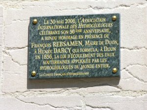 plaque in honor of the father of hydrology, Henry Darcy, in a park named