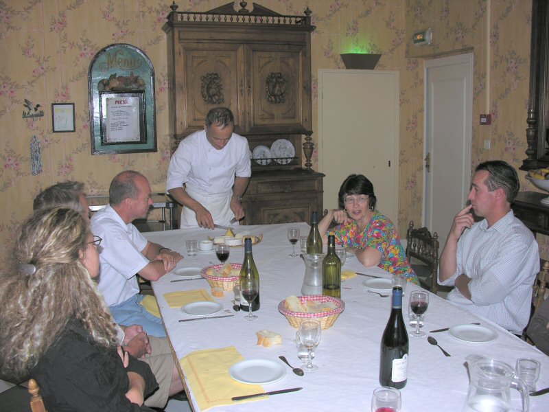 at Trois Ponts French school as the chef cuts the cheese |