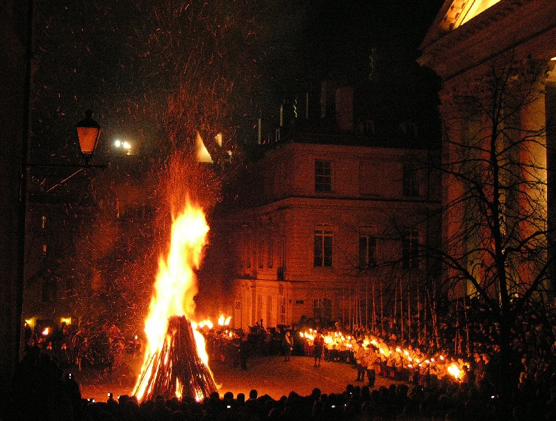 bonfire in St. Peter's Square in Geneva at the annual Escalade celebration