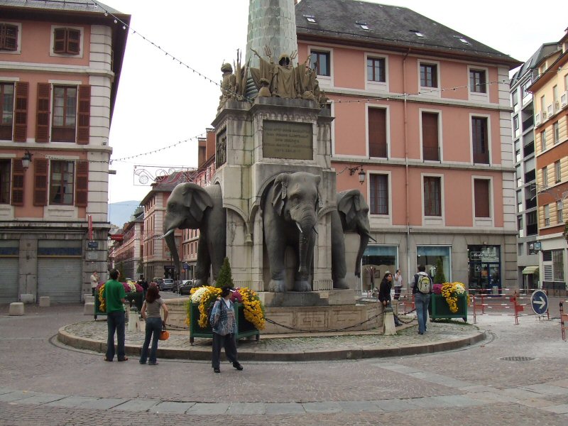 elephant fountain to honor the military officer from Chambery who saved