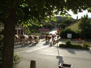 returning from high pasture in the Jura Mountains. |